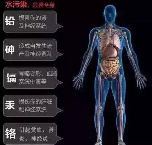 重金属污染导致的水污染,造成了饮水安全面临严重威胁。砷、镉、铅、铬、汞等重金属元素是剧毒物质,即使在饮用水中存在一亿分子一甚至十亿分子一,也对人们的健康构成威胁。一个化工企业即使排放几吨超标废水就可能污染一条江河。